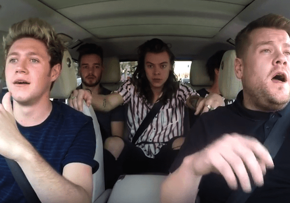 On Tuesday’s show, he asked the four members of One Direction to join him.The hashtag #1DCarpoolKaraoke was the top trending item on Twitter during most of the day Wednesday.Check out band members Niall Horan, Louis Tomlinson, Liam Payne and Harry Styles singing along with Corden.