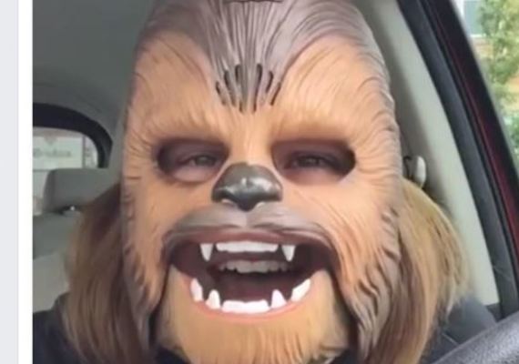Until recently, the watermelon video was the all-time leader in Facebook Live views, with about 10 million. That is until 37-year-old Candace Payne of Texas posted a video last week from the front seat of her car. By Monday, it had over 135 million views. Payne is unwrapping a box that says “Star Wars,” but she is hiding the rest from the camera. She is laughing and giggling. She can barely get the words out. At one point, she has trouble pronouncing “confiscate” because she is so excited to make the video showing off her new toy. What could it be that has her so excited? It turns out to be a Chewbacca mask from the Star Wars movies. Chewbacca is a wookie who is the partner of Han Solo, the pilot of the Millennium Falcon space ship. He is tall and furry like a dog. Chewbacca does not talk, he just makes different kinds of noises. The noise he makes is somewhere between a roar and a moan.
