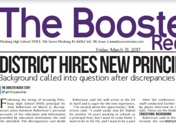 American reporters and news media are praising a group of high school students from southeastern Kansas. The students attend classes at Pittsburg High School and work for its newspaper. The school has about 900 students. Amy Robertson was named Pittsburg High’s new principal in early March. School officials said she lived in Dubai. They said she would move to Kansas and start her new job before the next school year. Robertson said she works as an education consultant in the United Arab Emirates. After reading a press release from the school and speaking with her on Skype for a newspaper story, the high school students had some questions. One of the students, Connor Balthazor, told The Washington Post that there were some things about Robertson “that just didn’t quite add up.”