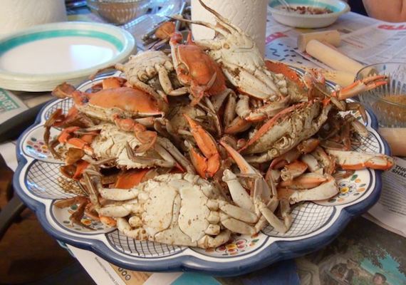 What have ten legs, two of them large claws, a hard shell cover, and live in oceans, fresh water, and on land? Crabs, of course! There are thousands of different kinds of crabs all over the world. They can be as small as a few millimeters across or grow as big as 4 meters. And all play an important part in the environments in which they live. Crabs may look strange. But many people also find them delicious. The blue crab is an especially popular crab for eating in the United States. These crabs can grow up to about 23 centimeters and they get their name from the blue coloring on the legs and claws. Blue crabs live in the waters of the western Atlantic Ocean, and in the Gulf of Mexico. However, one place in America is especially famous for its blue crabs: the Chesapeake Bay.