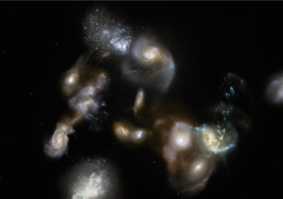 For the first time ever, astronomers have observed the birth of a galaxy cluster, known as a protocluster. The event, billions of light-years away, could form one of the largest-known structures in today’s universe. Using the most powerful telescopes on Earth, the scientists have observed a group of 14 galaxies in the early stages of crashing into one another. The galaxies are forming stars at a rate 1,000 times faster than our own Milky Way galaxy. Yet all 14 galaxies fit into an area just about four times the size of our galaxy. The gathering of galaxies is 12.4 billion light-years away from Earth. Because of the length of time it takes for light to travel, the scientists are actually looking back in history.