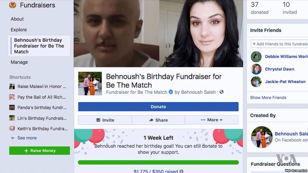 For her 35th birthday, Behnoush Babzani decided to hold a party. She used her birthday to ask friends to donate money to a cause she cares about: helping people who need bone marrow transplants. Babzani herself received bone marrow from her brother in a transplant operation. “It’s not that my body was making cancerous cells. It was that my body was making no cells,” she said. Turning to social media, Babzani published a picture of herself on Facebook’s website. The photograph showed her as a hospital patient. Using a new program on Facebook, she asked her friends to help raise $350. It has always been easy for Facebook users to send birthday messages to friends online. Now people are using the social networking site to turn birthday messages into donations for a favorite cause, such as a charitable group. A year ago, the American company launched a new feature that has helped charities in the United States and around the world. In its first year, Facebook’s birthday fundraiser feature raised more than $300 million for groups helping those in need.