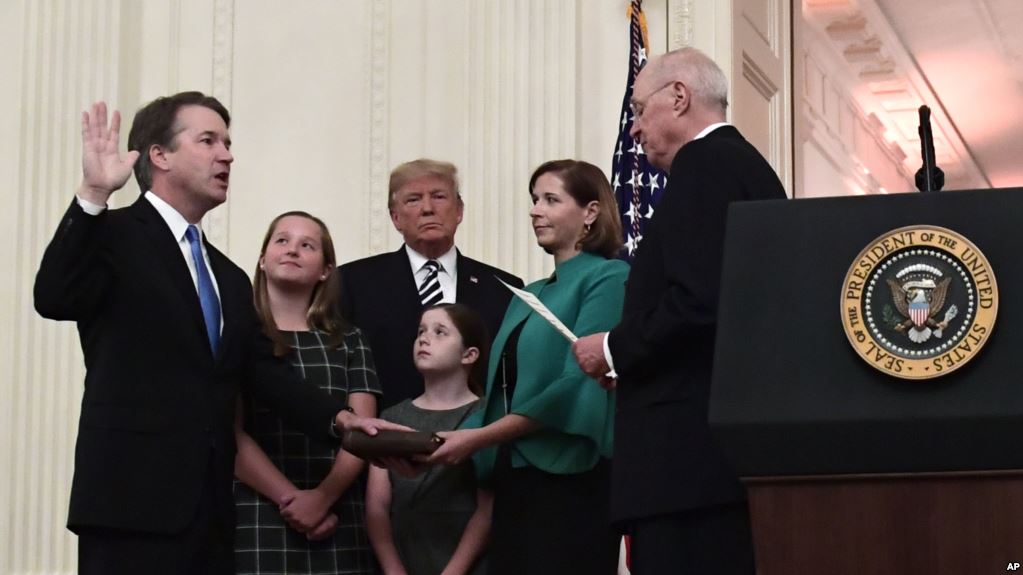 The newest member of America’s highest court has taken part in a ceremony with President Donald Trump at the White House. Brett Kavanaugh was sworn-in as United States Supreme Court Justice Saturday shortly after winning Senate approval in a 50 to 48 vote. But now he has taken an oath of service a second time for ceremonial reasons only. The televised event took place just one month before the United States holds mid-term elections. Kavanaugh joined the court after several weeks of heated debate among senators and the U.S. public. A California college professor had accused him of a sexual attack she said took place when they were both teenagers. He strongly denied the accusation, saying he had never acted in such a way toward any woman. A Federal Bureau of Investigation report said its limited investigation ordered by the president found no evidence to support the accusation.