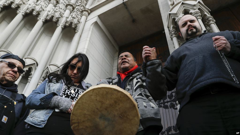 A group of five black men shouted insults while protesting centuries of oppression. Catholic high school students gathered in Washington to protest abortion. And Native Americans marched to end injustice for indigenous people around the world. These three groups met for just a few minutes Friday at the base of Washington’s Lincoln Memorial. The unexpected meetings were captured on video. Short parts of those videos then went viral on social media in the United States. They cast attention on a deeply divided nation that seems unable to agree on anything. At first the attention of the internet centered on a short video of one of the high school students, Nick Sandmann. He wore a red “Make America Great Again” hat, demonstrating his support for President Donald Trump. In part of the video, he appeared to be smiling and facing off against a 64-year-old Native American, Nathan Phillips, who was playing a traditional song on a drum. Sandmann’s classmates gathered around the two, laughing.