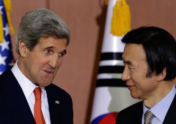 Mr. Kerry said the U.S., South Korea, and Japan alliance will continue to deploy the weapons and forces needed in the area.