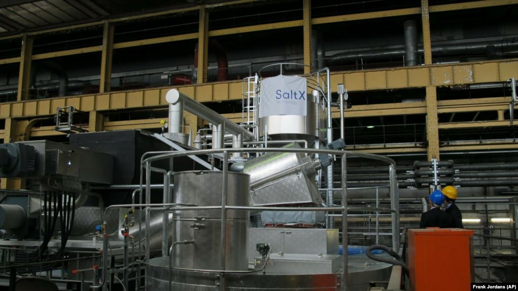 At a power station in Berlin, Germany, visitors find a shining piece of machinery that looks out of place in the building. Its silver pipes and containers hold a substance that reportedly could become a major ingredient for producing power in the future. Vattenfall, the station’s operator, says this form of energy would not depend on traditional fossil fuels, such as oil or coal. The company, working with a Swedish company called SaltX, is testing the use of salt to store heat. Yet it is not the kind of salt you add to food. Heat-produced energy represents more than the half the power Germany uses. If it works well, the salt-based energy storage system could help solve a problem presented by renewable energy sources, such as wind and the sun’s energy. The problem is that renewable energy sources are not completely dependable. They sometimes make too much, and sometimes too little power.