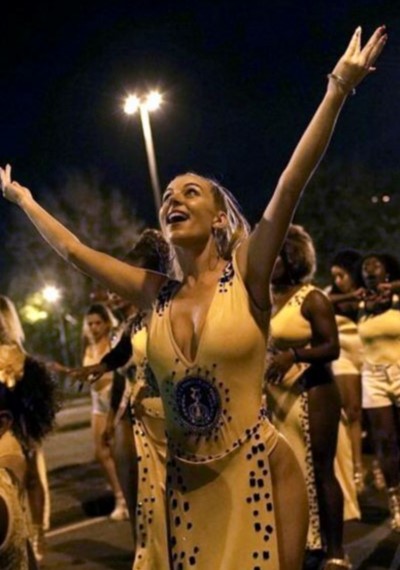 Title: Foreign Samba Dancers at Brazilian Carnival