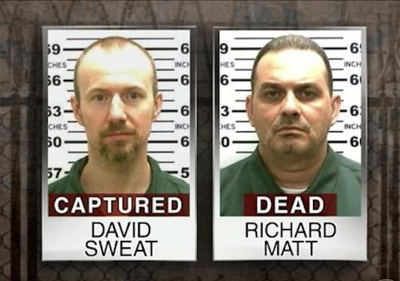 Hundreds of police officers had searched for David Sweat for 23 days after he escaped. He was captured in a town about 30 kilometers from the prison and three kilometers from the Canadian border. A second man who escaped with him, Richard Matt, was shot and killed Friday.
