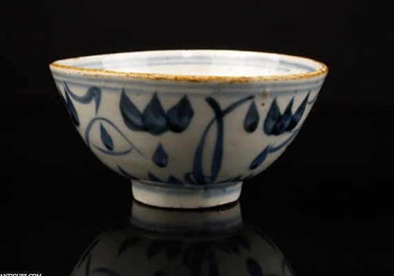 A small bowl bought for $35 at a home in Connecticut turned out to be a rare piece of ancient Chinese art. The bowl is worth between $300,000 and $500,000. It will soon go up for sale at an auction, an event at which things are sold to the people who offer to pay the most. The white bowl has blue paintings of flowers and other designs. It is about 16 centimeters across. The company holding the auction, Sotheby's, says the object was found at a yard sale in the New Haven area last year. A yard sale is a sale of used objects held at the seller's home. A collector of old objects, or antiques, saw the bowl at the sale and thought it could be something special.