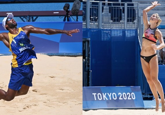 Men who play beach volleyball at the Olympics wear swimsuits along with thin t-shirts without arms known as tank tops.