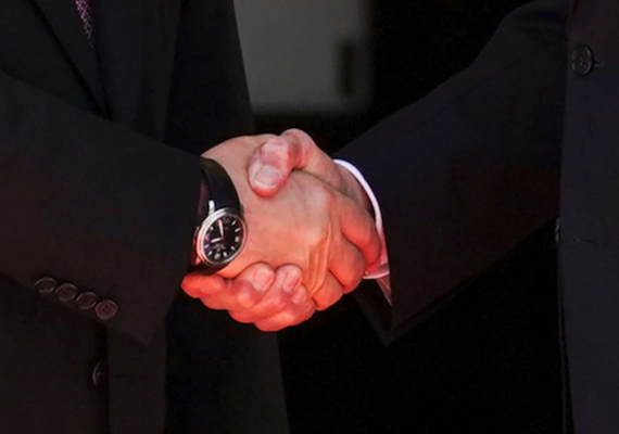 an act of shaking a person's hand with one's own, used as a greeting or to finalize an agreement