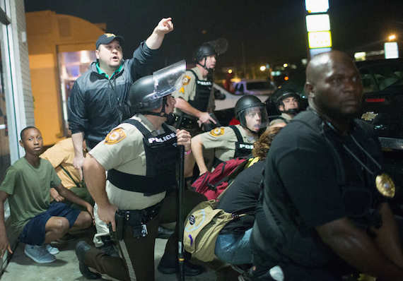 The shooting took place on what had been a day of peaceful demonstrations in Ferguson. The protesters were marking the one-year anniversary of the shooting death of an unarmed black teenager by a white police officer.