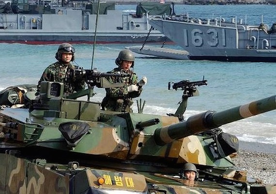 The exercise takes place as tensions between South and North Korea are high. Two South Korean soldiers were recently seriously injured when landmines exploded as they were patrolling the area between the two countries. The South blamed North Korea for placing the mines in the ground.